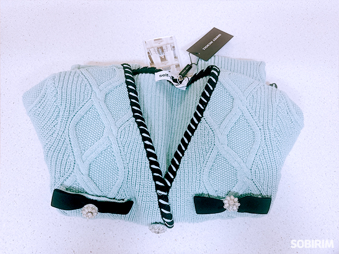 셀프포트레이트의 민트가디건은
